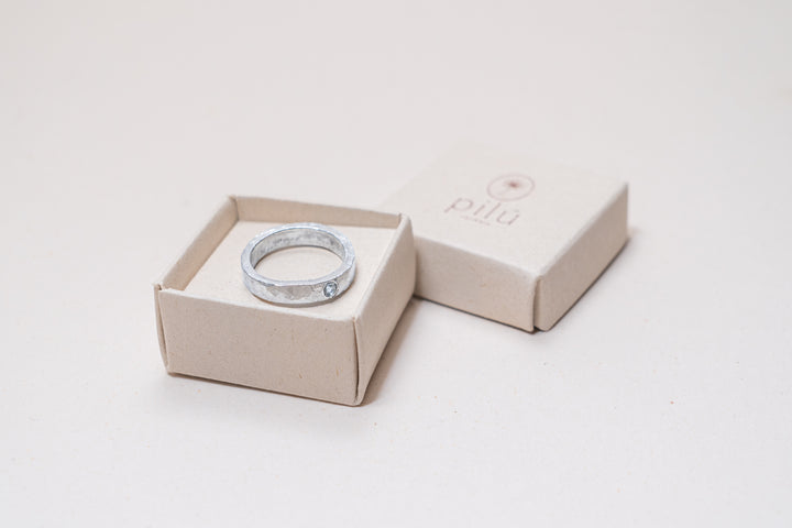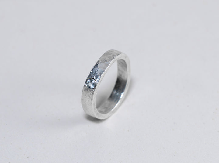 ANILLO BANDA AGUAMARINA PLATA LEY 950.