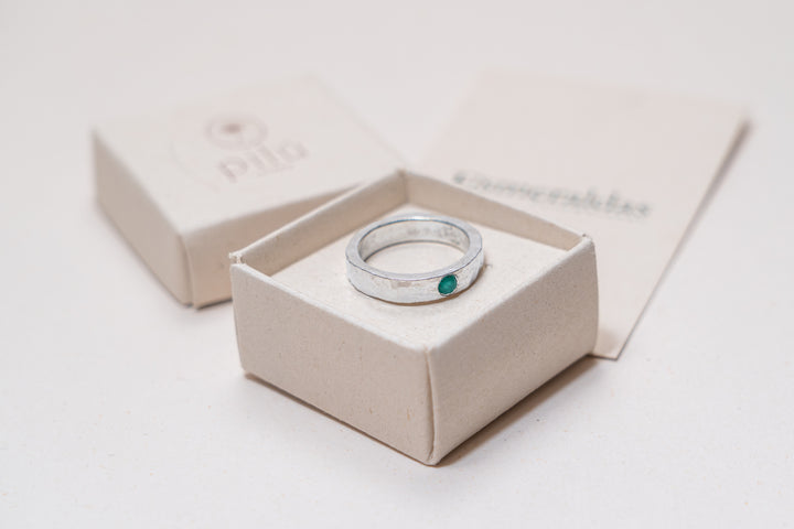 ANILLO BANDA ESMERALDA PLATA LEY 950