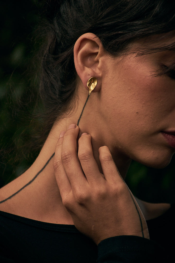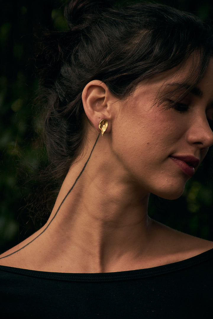 Aretes topos en forma de hoja de achiote en bronce en baño de oro de 24kl.