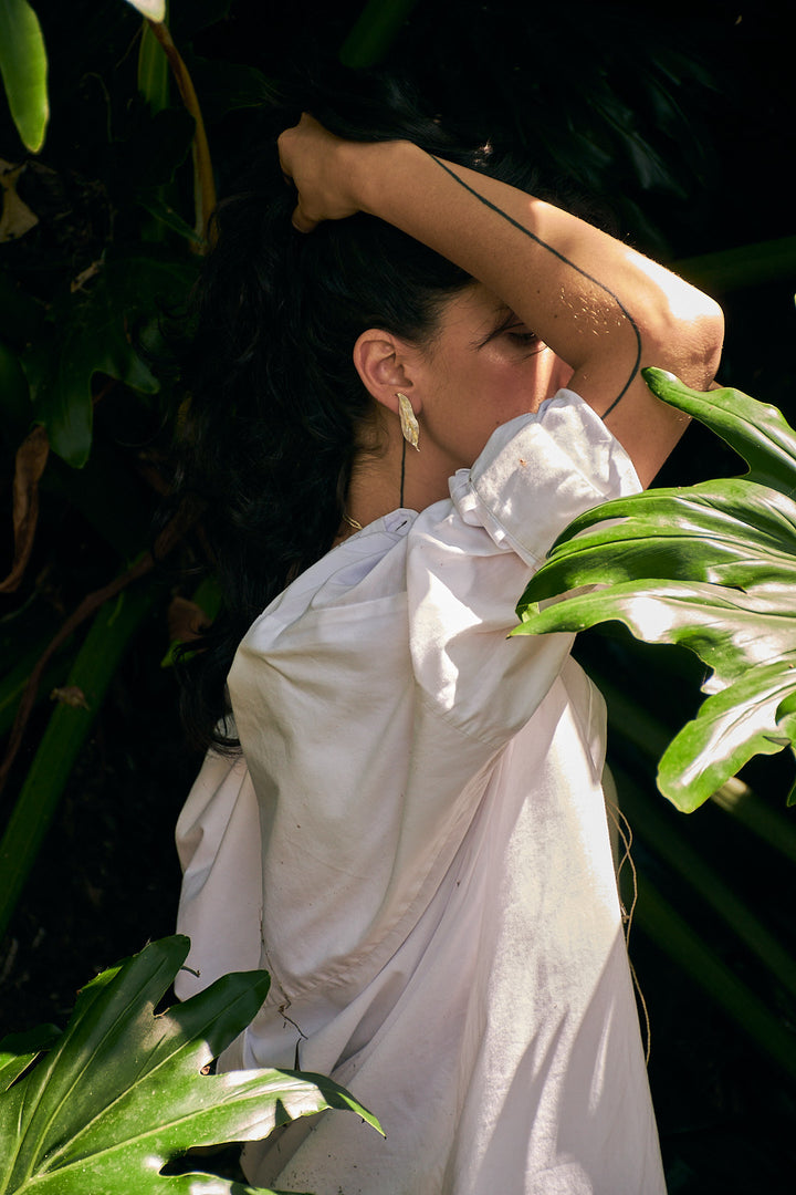 Aretes en forma de hoja de cúrcuma en bronce en baño de oro de 24kl.