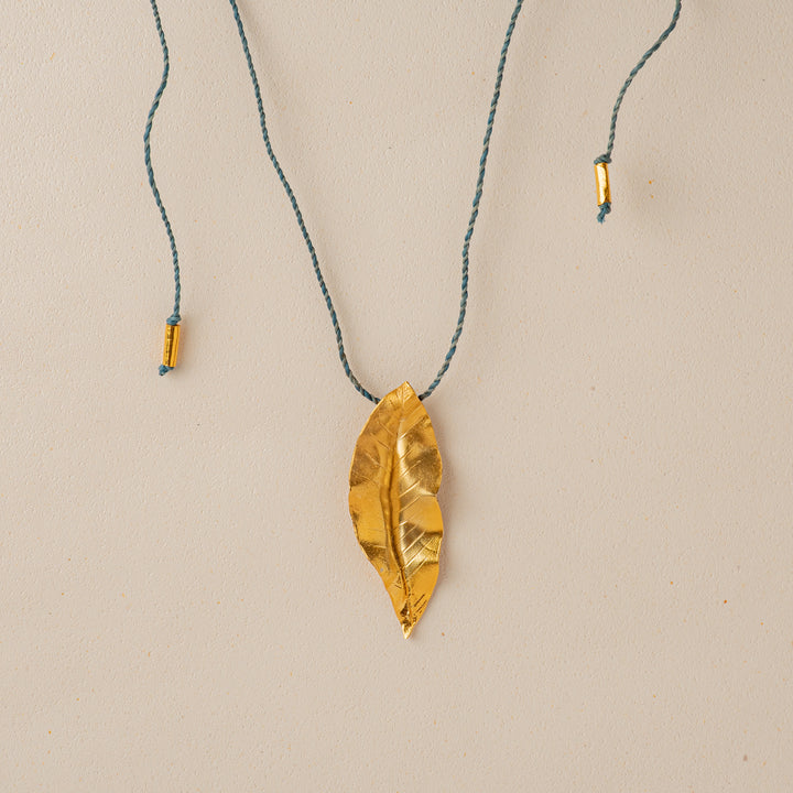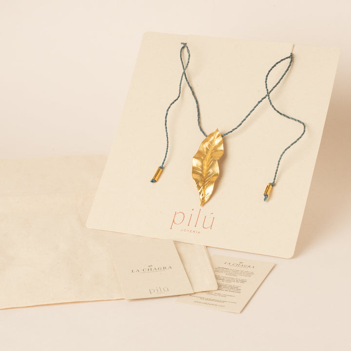 Collar maxi hoja huito dorado en bronce con baño de oro 24kl.